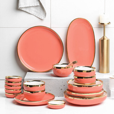 精选亮面釉面设计,质地细腻光滑,色泽明亮透彻,清新自然。使用不规则金边描边。轻奢又大气,色泽饱满圆润。