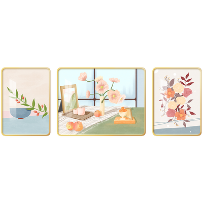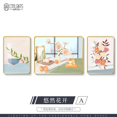 悠然花开装饰画组合,让花开在客厅,为你的生活增加活力。使用油画布装框,更加仿真,增加生活中的艺术气息。