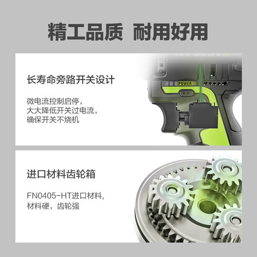 选用无刷电机,运行平稳,有效减轻磨损,减低损耗,提供长久使用寿命。紧凑机身,携带方便,拿握舒适。