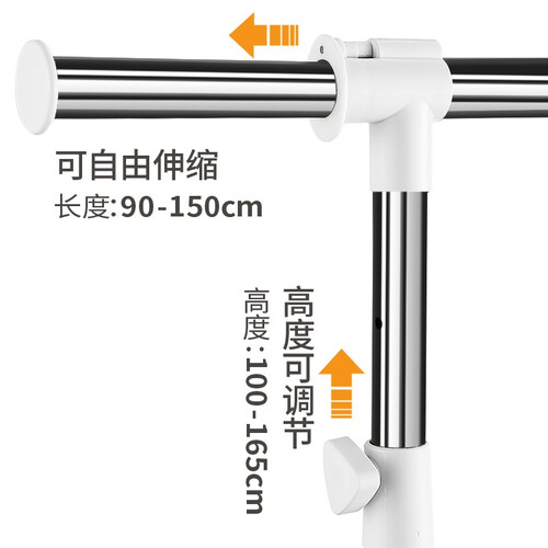 精选优质碳钢材质,坚硬耐磨不易生锈,稳固承托衣物。采用可伸缩设计,可以随意调节高度和长度,满足更多需求。