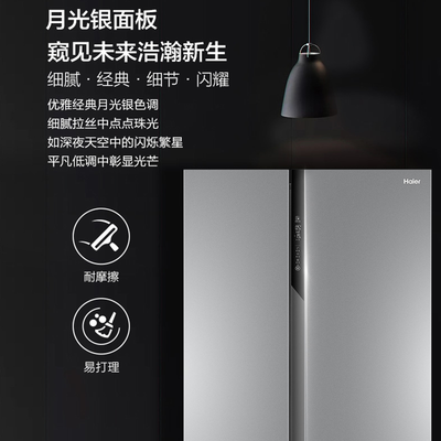 优雅月光银色调,细腻拉丝中点缀珠光,彰显居家美学。90度自动悬停门,无需手扶,开关更自由。