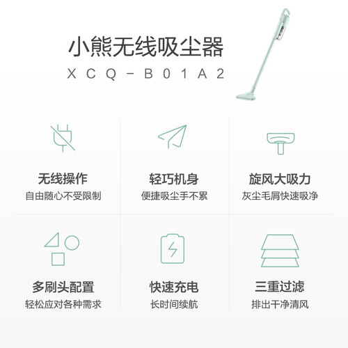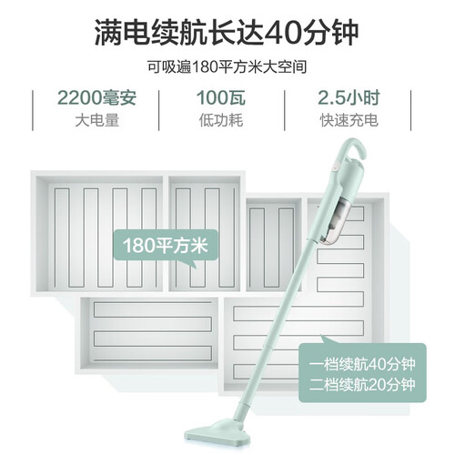 配备有2200毫安大电池,续航能力更加强大,免于反复充电的麻烦。分段式吸尘杆,能够灵活拆卸,满足不同清洁需求。