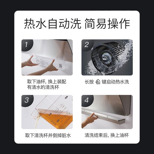 搭载无极变频智感系统,可智能检测烟道阻力,无极调速,无需手动调整。内置直流变频电机,运行动力强劲,做饭无负担。