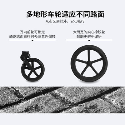 采用四轮避震设计,搭配悬挂弹簧,有效减少宝宝因震动引发的不适。轻踩脚刹,即可停步起步,大大提高了安全性。