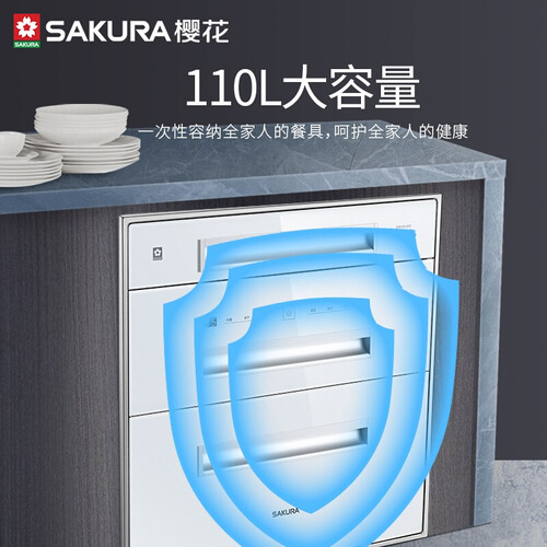 60-85℃远红外烘干,拒绝餐具湿哒哒,防霉无异味,让餐具上的细菌无处可逃。110L大容积,可同时收纳多副碗筷杯碟。