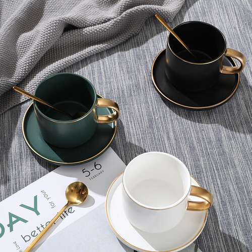 经过高温煅烧而成,釉面光滑细腻,长久使用不易掉色。清新素雅的纯色杯身,勾勒细致的金边加以点缀,更有装饰性。