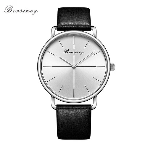 简约大气的白色表盘,简洁大方,经典不易过时,轻松搭配各种服装。皮革材质表带,透气性强,佩戴更舒适。