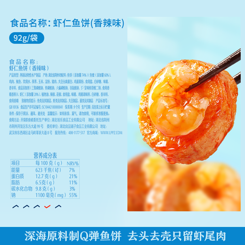 鱼和虾的鲜美碰撞,使肉质Q弹鲜美,鲜味、海味、鱼味绵延不绝。严格的工艺要求,加入多种香辛料拌料,卤制出麻辣风味。