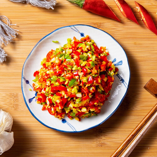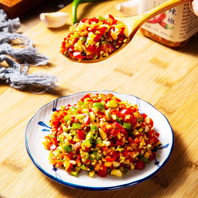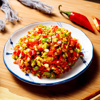 青红色辣椒做材质,色泽更加鲜艳莹润,带给您垂涎欲滴的体验。纯手工制作工艺,原汁原味保留剁椒本色,是米饭的好伴侣。