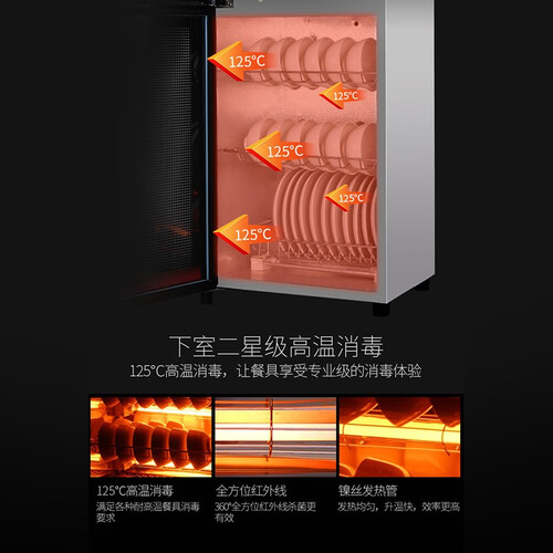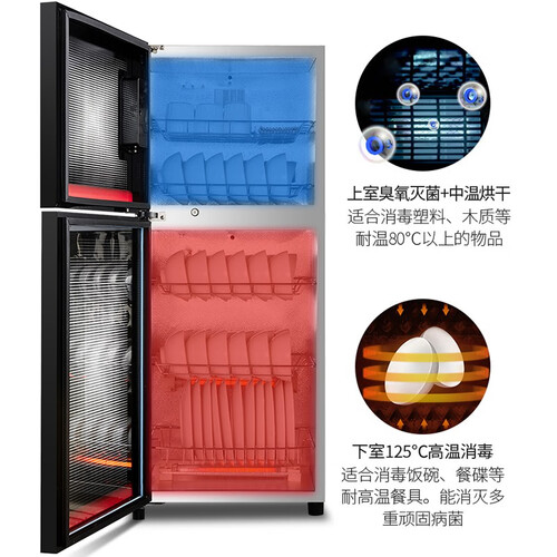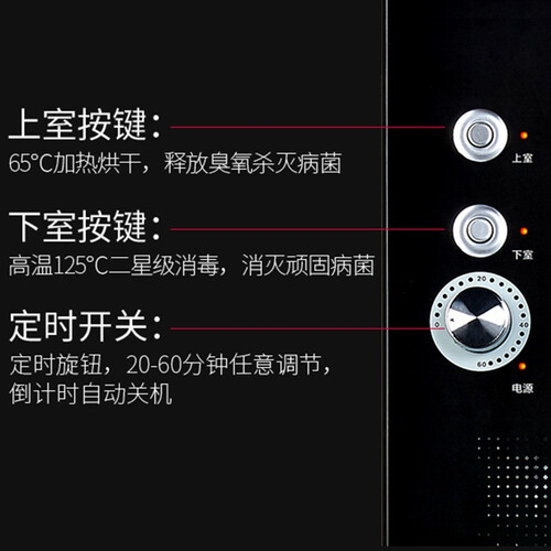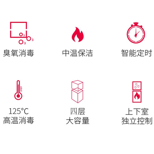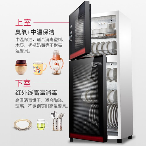 带有智能门控开关,一开柜门臭氧即刻停止释放,保留强劲消毒能力。双层钢化玻璃,能承受大冲击力,久用不易碎裂。