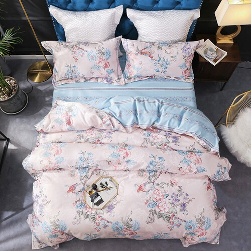 床面上印有清新的碎花,宛如置身于花的海洋里,从而提升您的睡眠质量。被套除被头外三周压线,美观大方。