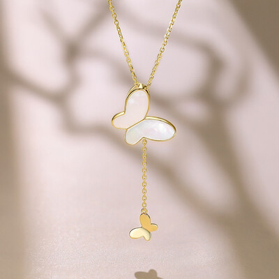绚丽多彩的母贝蝴蝶设计,折射出明媚光彩,充满着自然活力气息。搭配18K金材质小蝴蝶,增加层次感,点缀颈间更时尚吸睛。
