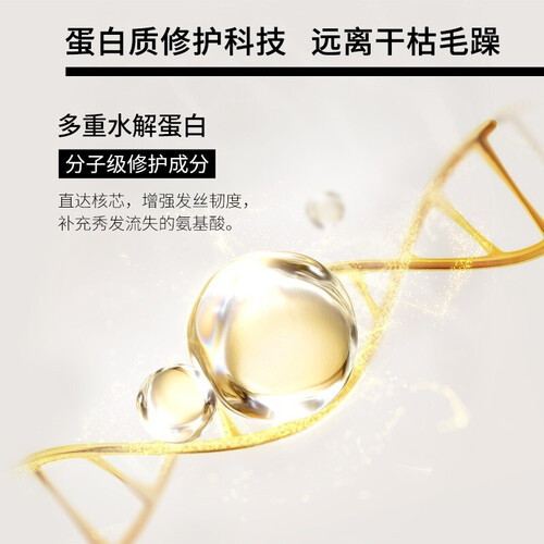 搭载蛋白质修护科技,高性能成分补充头发流失的氨基酸,可修护受损的毛鳞片,令发丝更加强韧有光泽。