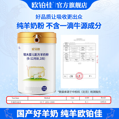 欧铂佳 纯羊较大婴儿配方羊奶粉