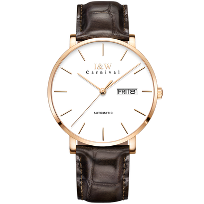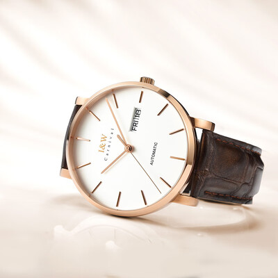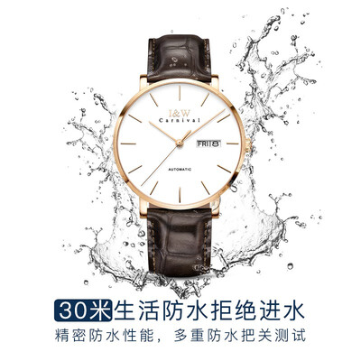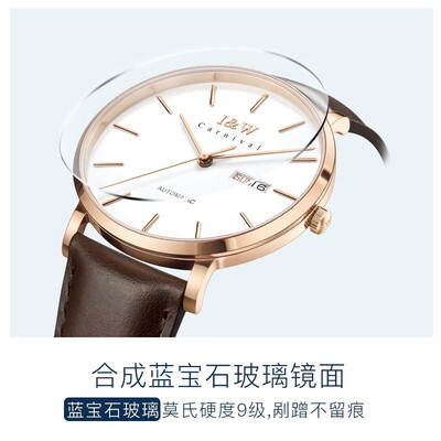 原装进口机芯,防刮宝石镜面,意大利牛皮表带 , 玫金蓝面,进口机芯,亮黑光皮,是经典系列轻奢时尚手表。