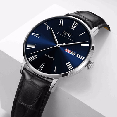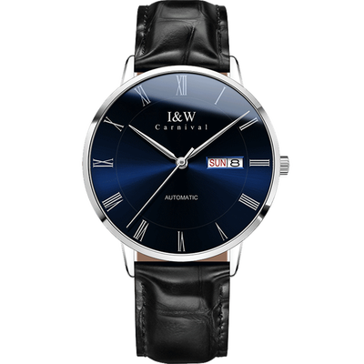 深蓝色渐变表盘,低调又神秘,与银边和黑色皮带相结合,轻松衬显出儒雅稳重气质,搭载自动机械机芯,动能储备时间长,稳定耐用。