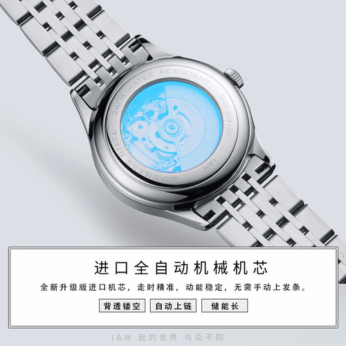 拥有全自动机械机芯,稳定了走时的精准性,减小时间误差;搭配双日历窗口,能够清楚的了解星期和日历,使用更方便。