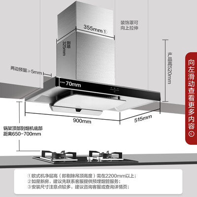 配备隐匿式油网,保持外观干净整洁,轻松搭配厨房风格。搭载立方环吸云板,有效扩大拢烟面积,防止油烟上脸。