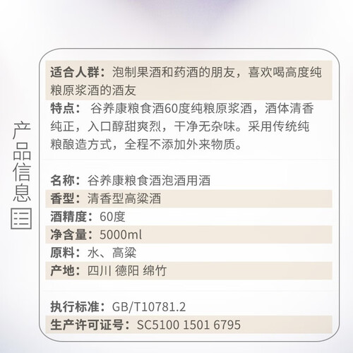 宽口玻璃瓶身,口径宽大,方便投料和取酒,无需另外购置酒瓶。无任何添加,保证白酒纯正口感,饮用更加安心。