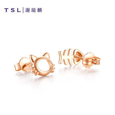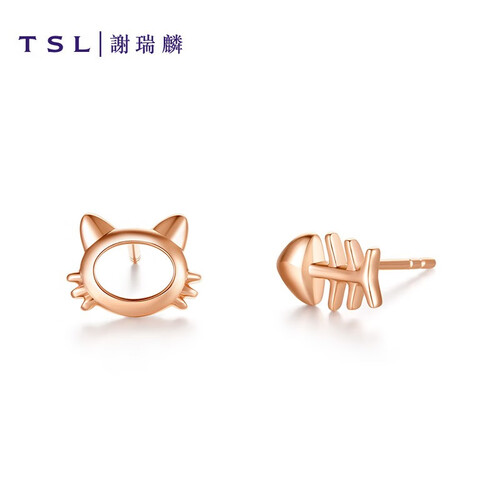 谢瑞麟 个性猫与鱼骨玫瑰金耳钉