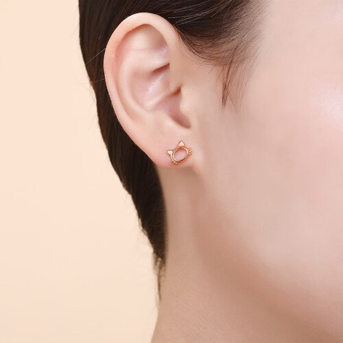 不对称的耳钉,精巧可爱的猫与鱼骨造型,彰显个性与时尚感。采用温柔玫瑰金打造,散发出柔和的光芒,更凸显白皙肌肤。