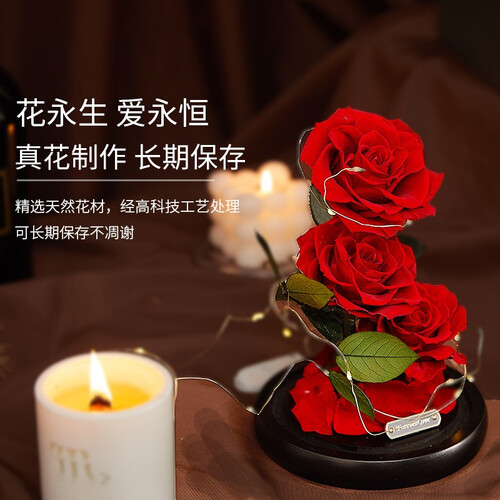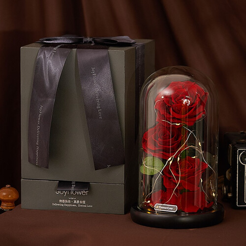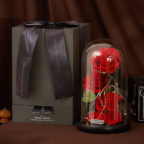 经过脱水、脱色、烘干、染色等工序加工,让花朵与鲜花无异,延长存放时间不凋谢。精致礼盒包装设计,尊贵大气,送礼更体面。