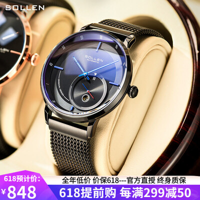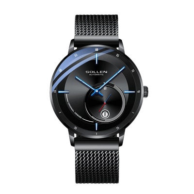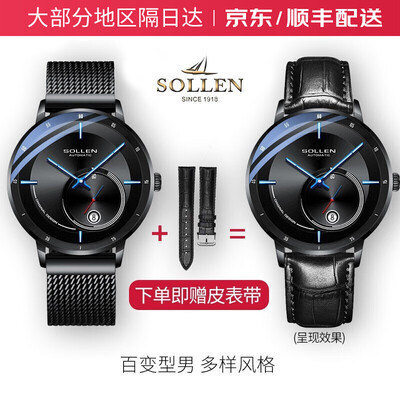 梭伦黑面蓝钉防水机械表