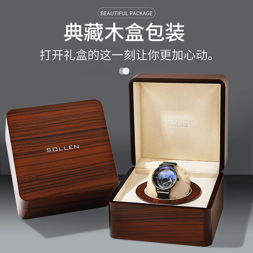 采用全自动机械原装机芯,坚固可靠,不容易损坏,能长时间佩戴;双保险按扣设计,方便易解,能为日常佩戴节省时间。