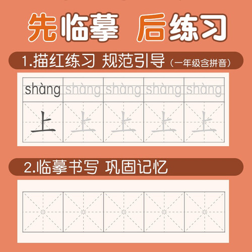 运用先描红、后临摹阶段性练习,循序渐进规范字体,让孩子书写一手好字体。加厚纸张设计,不易擦破,可循环利用。