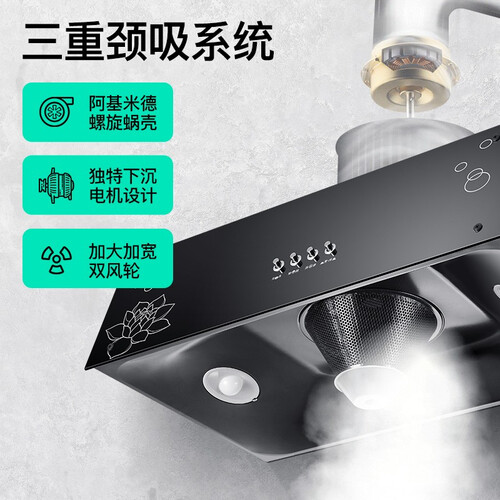 拥有多重吸力,可根据烹饪需求自由调控,节能省耗。采用贴近风轮的深腔设计,可双环旋吸,快速拢烟,还原洁净厨居空间。