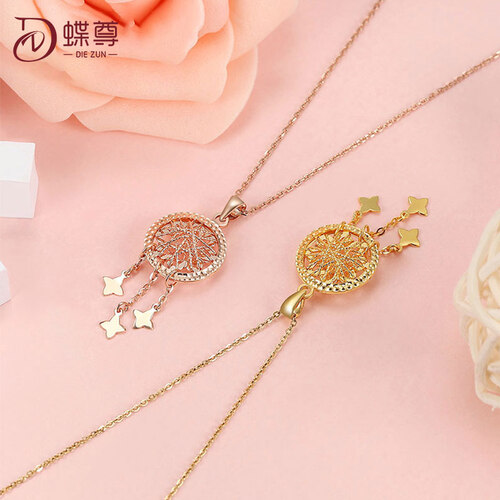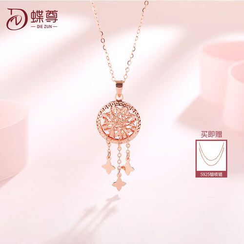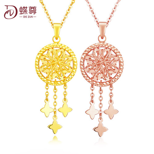 蝶尊玫瑰金捕梦网时尚K金吊坠