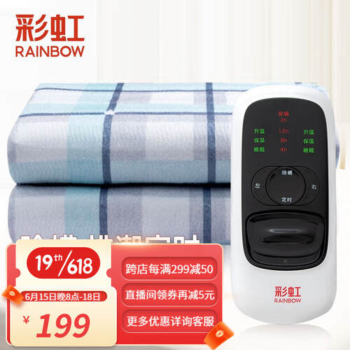 彩虹除螨双温双控电热毯