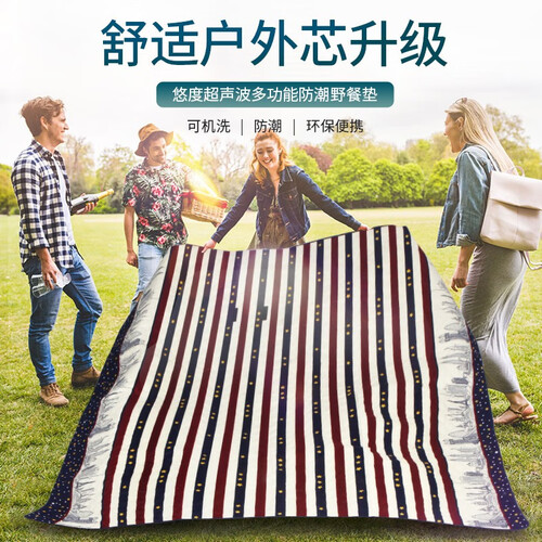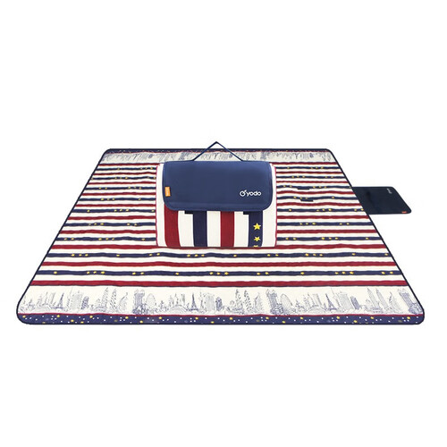 垫底部搭载的EVA面料,可以有效的隔绝地面的寒气与潮湿。配合上整齐的车线设计,可使野餐垫不易出现脱线的情况。