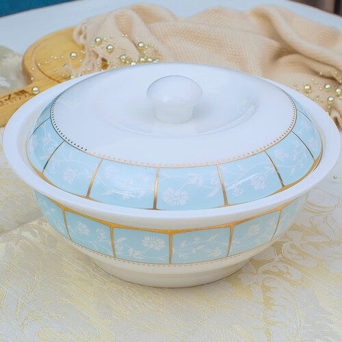 细腻的骨瓷材质,质地通透玲珑,经久耐用,不开裂,不变形,同时套装碗碟融入经典的色彩和图案进行装饰,更让人回味无穷。