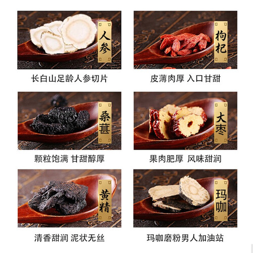 专用地道长白山人参,带来正宗的滋补效果。不加冰糖不打粉,原材料看得见,品质有保障,冲泡之后入口甘甜。