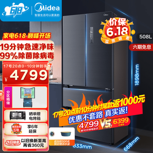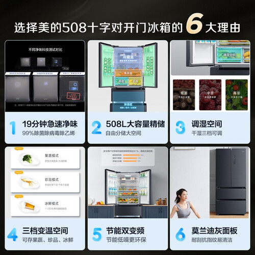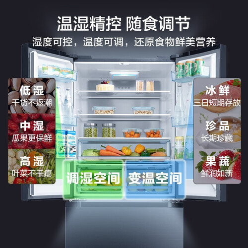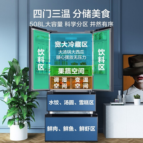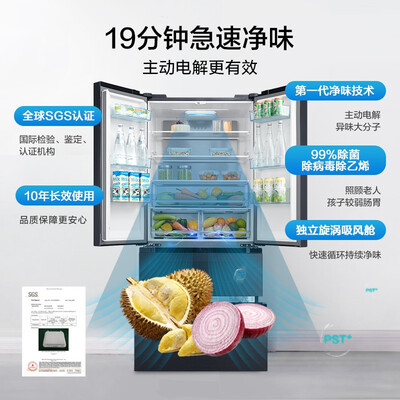 主动除菌技术,除菌率达99.99%,且可19分钟急速净味,保持冰箱内持久清新干净。科学分区,精细储鲜,食物存放井然有序。