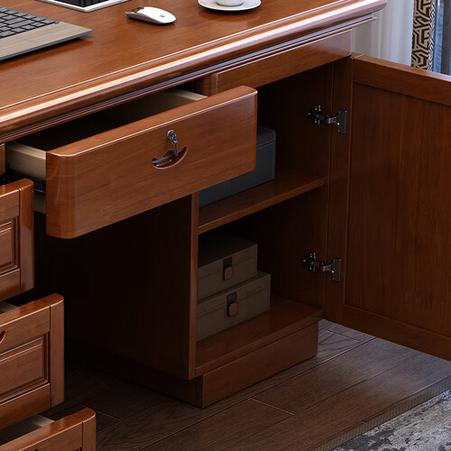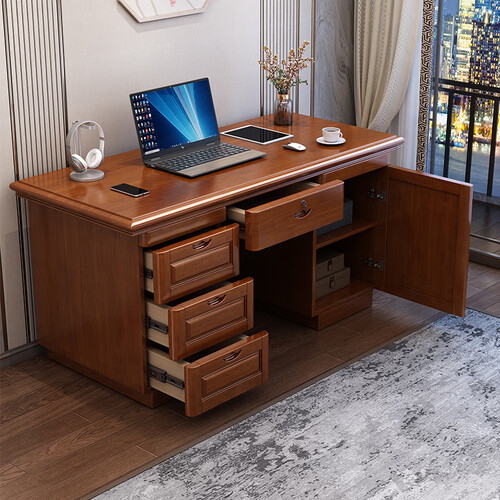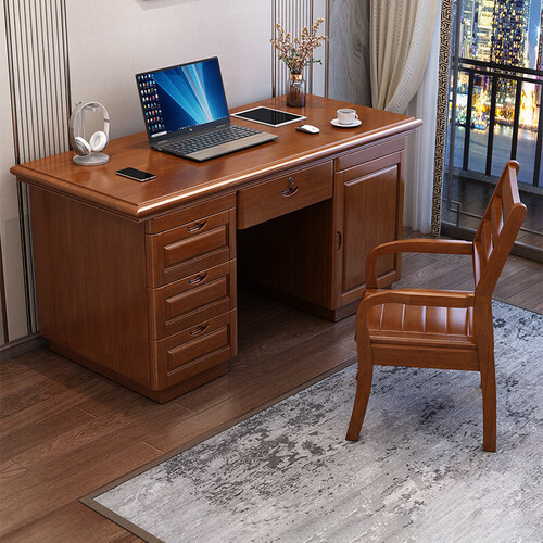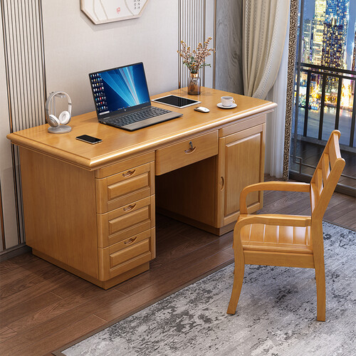 书桌以进口橡胶木为基材,结构结实稳固,不易开裂不易变形。结合净味油漆开放式喷涂,漆膜饱满均匀,而且健康环保无异味。