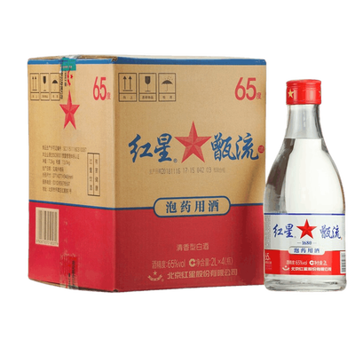 高粱大麦等原料,酒质清澈透明,气味香郁,清香纯正,回味悠长。搭配清晰红星标志,中国特色,富有韵味。