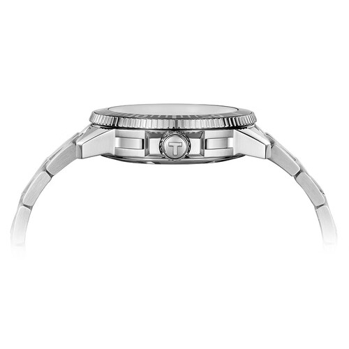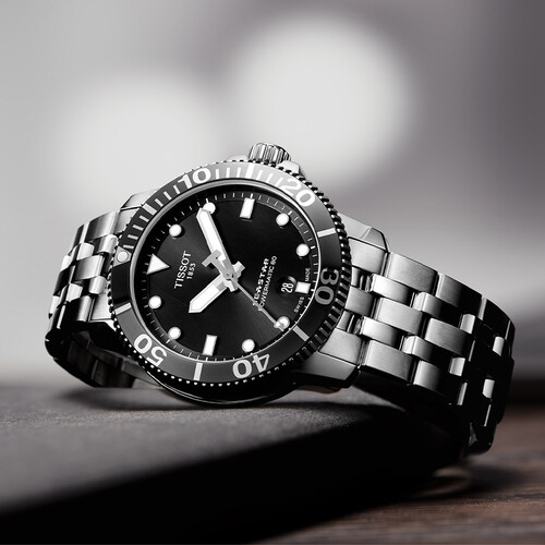 精钢表带配以黑色花纹边表盘,增添几分柔情设计感,沉稳大方,佩戴彰显时尚儒雅气质。300米防水性能,专业潜水者可戴。