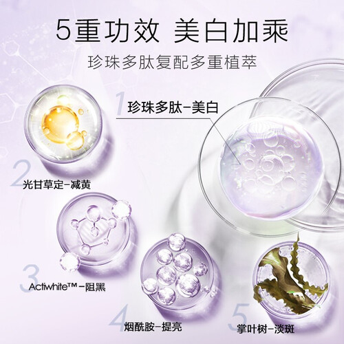 添加珍珠多肽成分,能够深入肌底改善肤色,由内而外提亮面部。可以均匀肤色,改善暗黄,让素颜也能保持净透光彩。