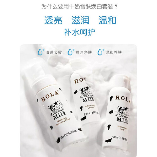 精选澳洲牛奶精华可以提亮肤色,多种植物精华可以水润白皙肌肤,排除皮肤底部的暗黄沉淀,温和不刺激。