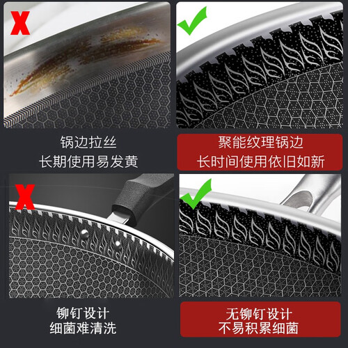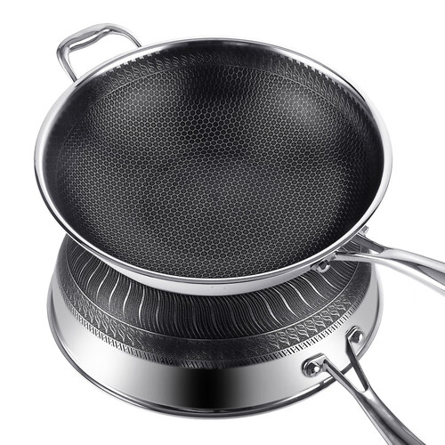 316不锈钢锅身耐高温抗腐蚀,锅体采用9层特殊工艺压铸,蜂窝纹理锁油的同时快速升温;导热均匀锅底不发黑不怕刮蹭。