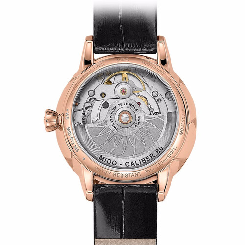 纯净洁白的盘面,指针字钉都采用玫瑰金设计,配合莲花纹路效果,体现奢华的艺术美学,表带采用质感真皮,柔韧细腻。
