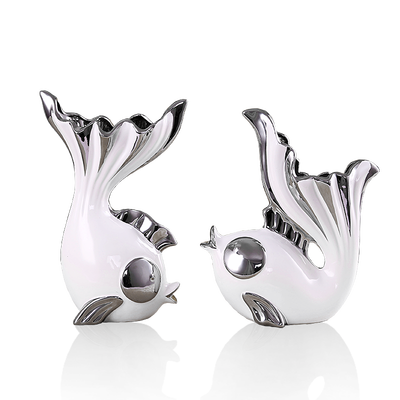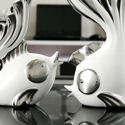 华达泰陶瓷 亲嘴鱼 装饰摆件