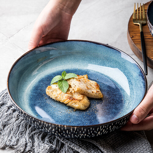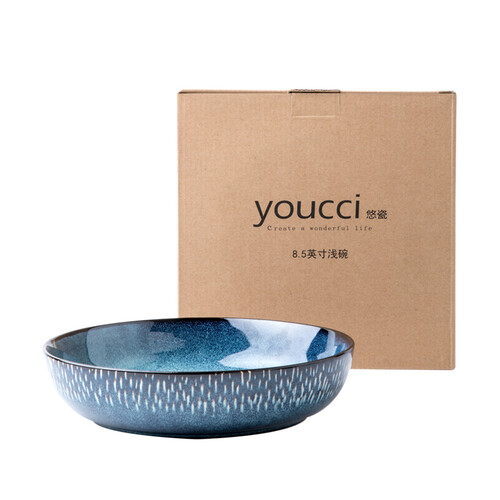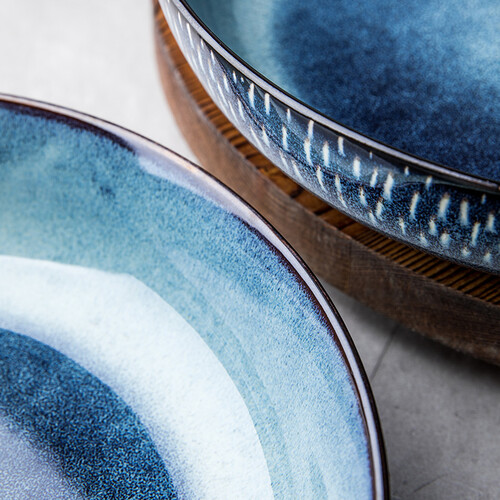 圆润的器型大口径好清洗,沉静的蓝色系星空釉色,经过窑炉内温度变化自然形成;外壁上手绘纹饰在瓷面呈现点点星光。