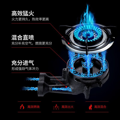猛火直喷设计,火力迅猛加热均匀,可以减少烹饪使用时间。一体式炉头和出色的能效等级,让火力更集中稳定,减少废气更节能。