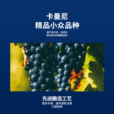 从种植到采摘到酿造,这款卡曼尼葡萄对细节的追求具有严谨的态度,让葡萄自然生长,这样果实会很饱满,确保酒体的醇正。