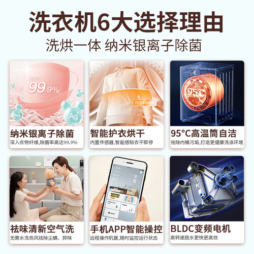 采用了触摸屏的设计,功能一目了然让操作更方便。拥有10KG的大容量设计,床单被套也能轻松的洗。