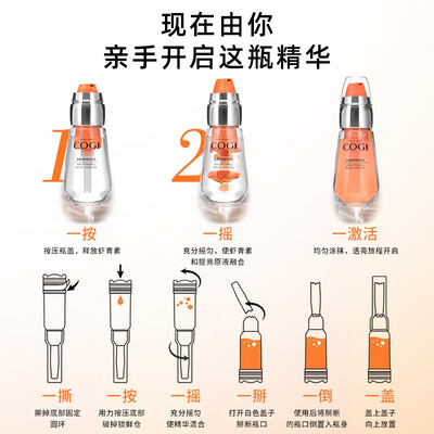 提取活性虾青素成分,由内而外改善肌肤状态,轻松焕发出亮泽光彩。加上真空原液仓包装,充分保留活性精粹,经久耐放不易挥发。