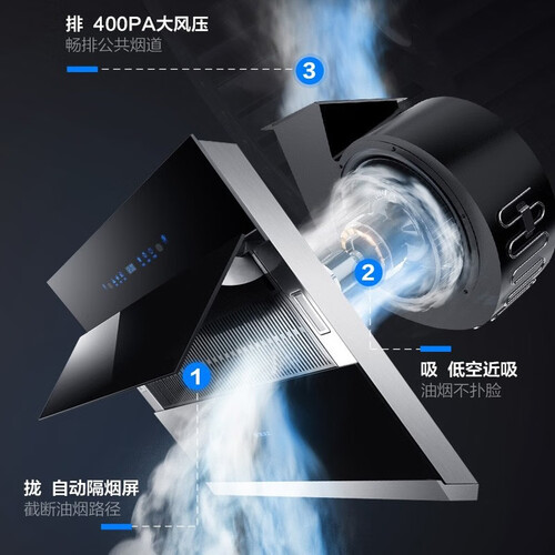 采用高温清洗设计,有效软化并清除油脂,延长使用寿命。400Pa强劲吸力,做饭高峰油烟不倒灌,无惧乌烟瘴气。